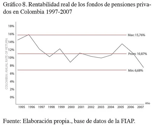 Por otro lado, de acuerdo a los datos históricos presentados en el gráfico 8. la rentabilidad real del sistema ha tenido una tendencia hacia la baja desde el año 2005; con un nivel promedio de 10,87% anual; hecho que dificulta aún más el cumplimiento de la GPM para aquellas personas que cotizan con una base no mayor a dos salarios mínimos.