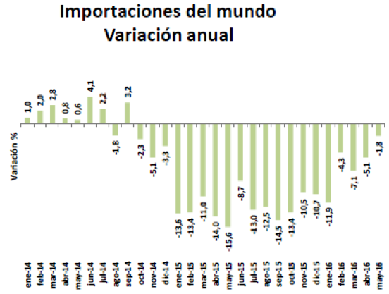 Por otro lado, es importante tener en cuenta el contexto de las importaciones a nivel mundial, en donde se evidencia que desde octubre de 2014 las compras mundiales empezaron a registrar variaciones negativas, en forma consecutiva; siendo lo corrido del 2016 el período en el cual se evidencia una menor tasa negativa (OMC, 2016). A pesar de la caída en exportaciones, que responde a un panorama internacional (ver gráfica 4), se podría afirmar que nuestras relaciones comerciales con Estados Unidos, con poca probabilidad, llegarán a generar un cambio como consecuencia de las elecciones presidenciales.